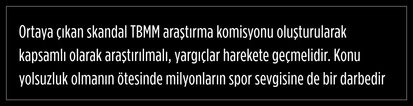 Yargıçların harekete geçmesi gerektiğini ifade eden Erkol, konunun yolsuzluk olmanın ötesinde milyonların spor sevgisine de bir darbe olduğunu kaydetti.