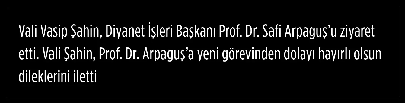 Ankara Valisi Vasip Şahin, Diyanet İşleri Başkanı seçilen Prof. Dr. Safi Arpaguş’u ziyaret etti ve hayırlı olsun dileklerini iletti.