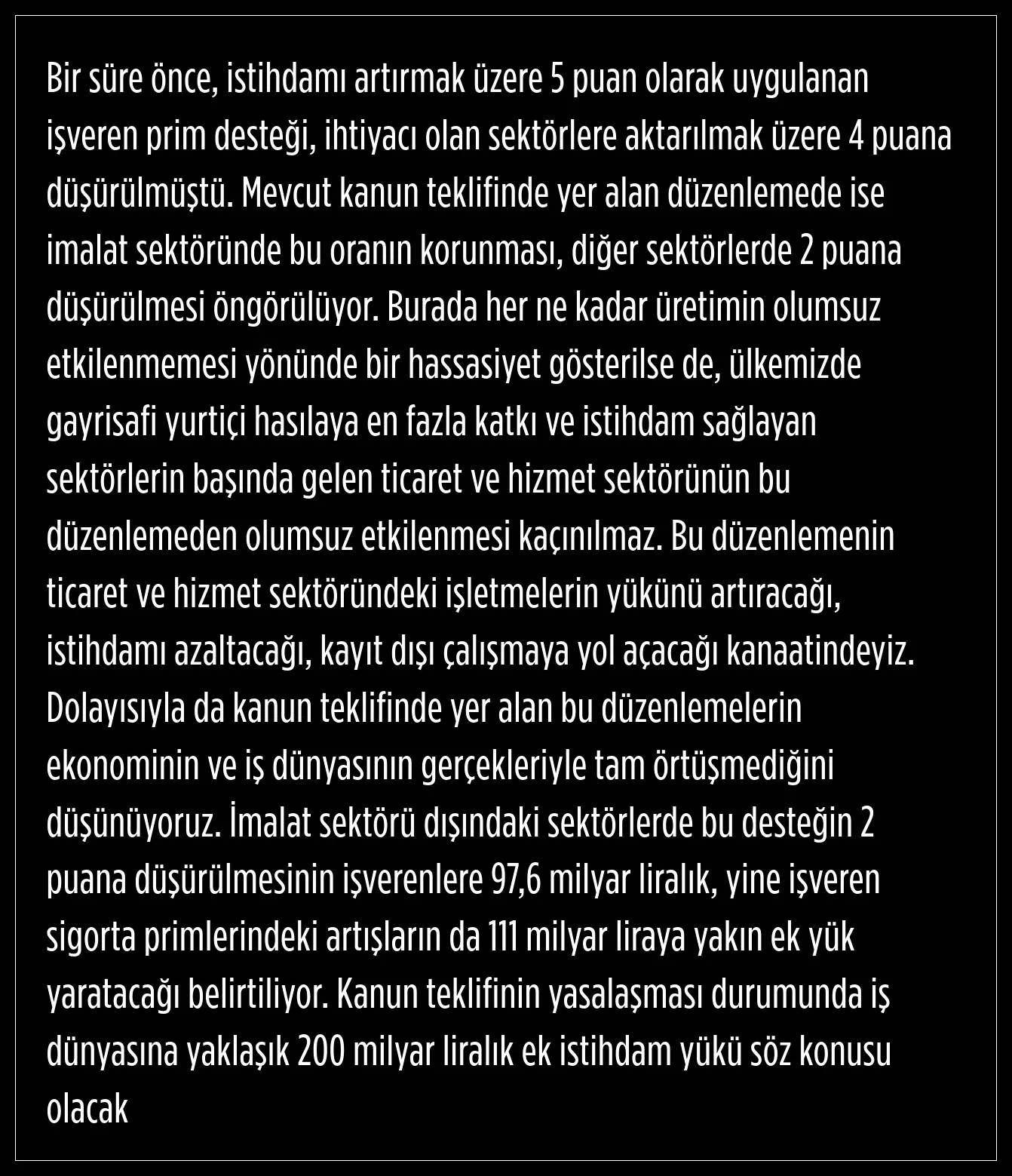"iş dünyasına yaklaşık 200 milyar liralık ek istihdam yükü söz konusu olacak"