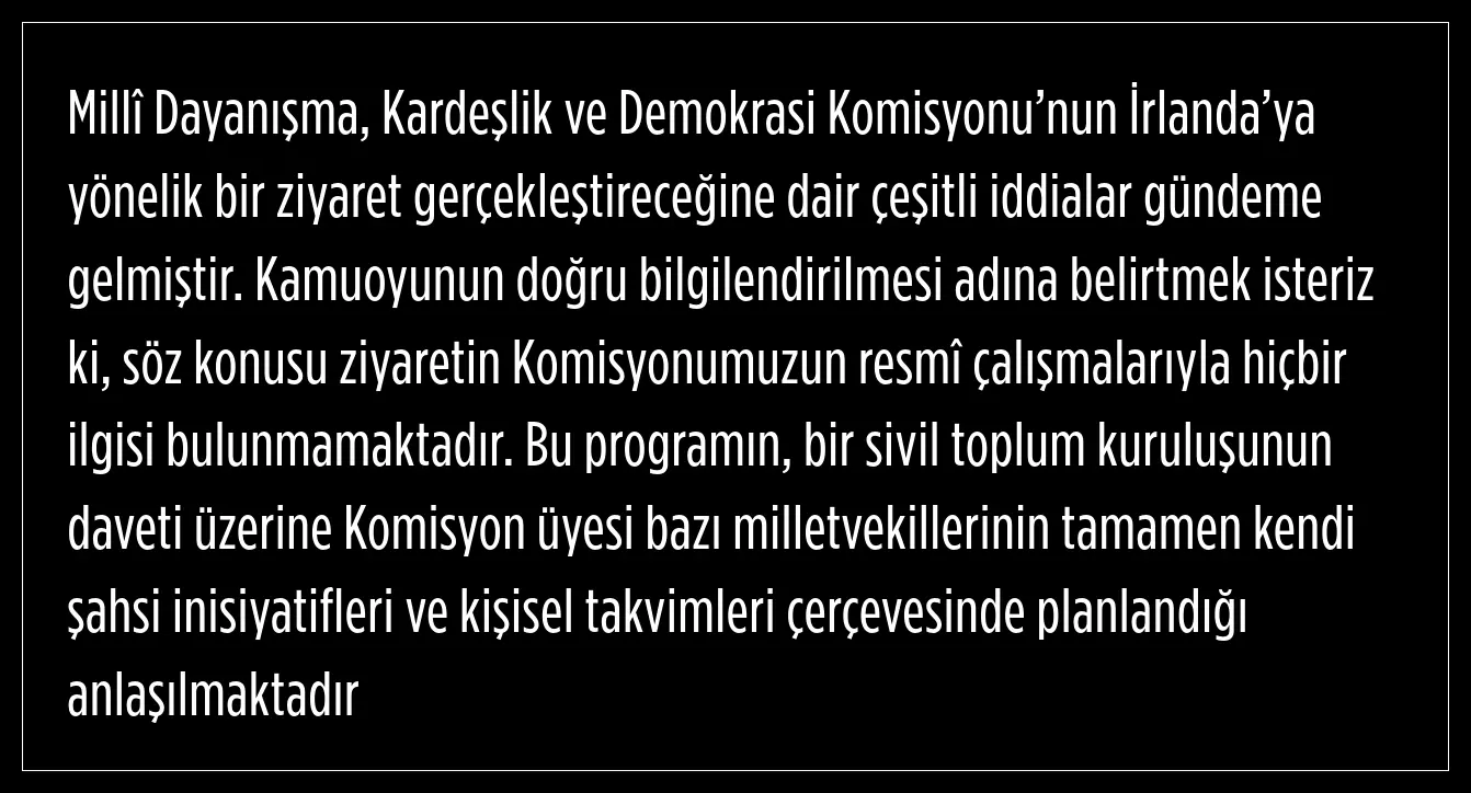 Emir, Milli Dayanışma, Kardeşlik ve Demokrasi Komisyonu’nun İrlanda’ya planlanmış bir ziyaretinin hiçbir şekilde söz konusu olmadığını ifade etti.