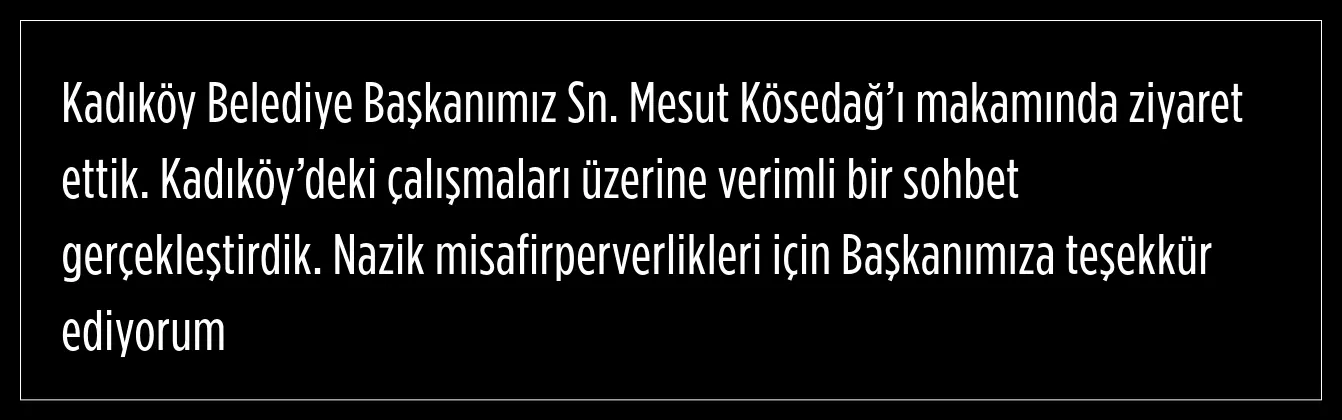 Sosyal medya hesabı üzerinden ziyarete ilişkin bir paylaşım yapan Adnan Beker, Kösedağı'nın Kadıköy’deki çalışmaları üzerine verimli bir sohbet gerçekleştirdiklerini kaydetti.