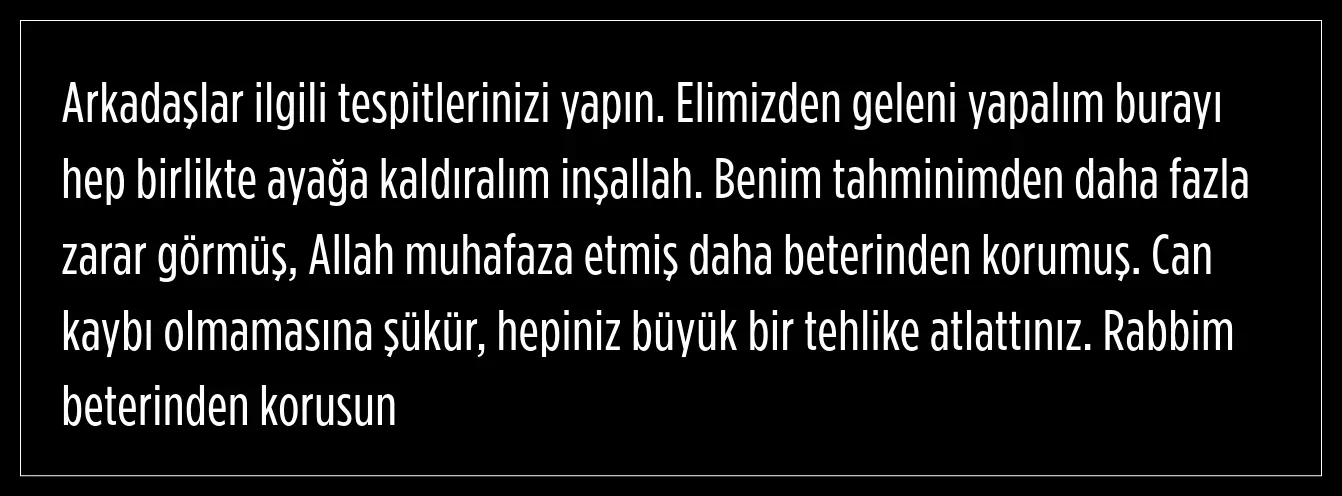 Tahmininden daha fazla zarar gördüğünü söyleyen Murat Ercan, can kaybı olmamasının yüreklere su serptiğini aktardı.