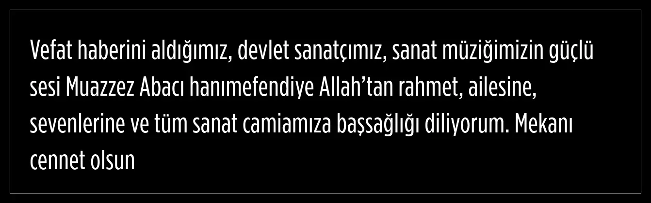 Beker, Muazzez Abacı'ya Allah’tan rahmet; ailesine, sevenlerine ve sanat camiasına başsağlığı diledi.