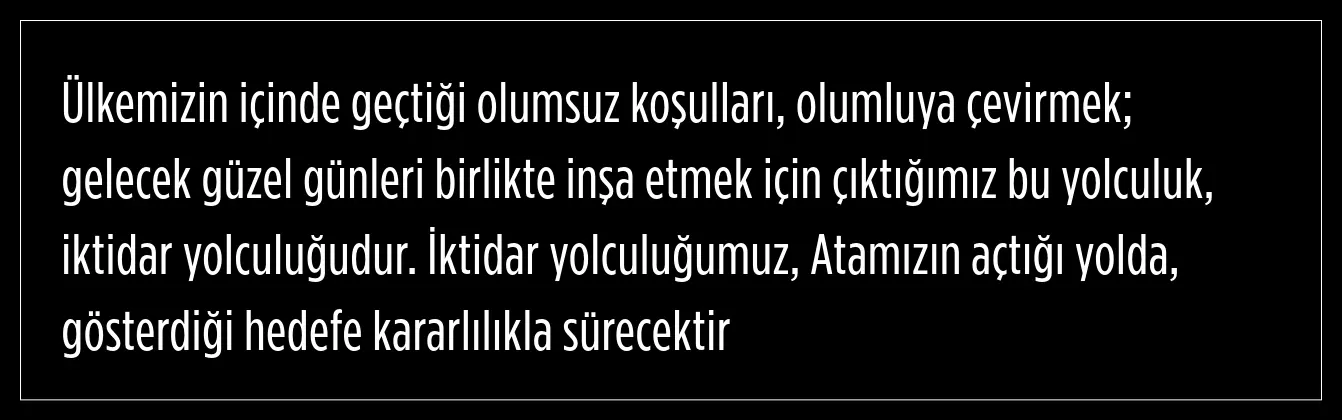 "İktidar yolculuğumuz, Atamızın açtığı yolda, gösterdiği hedefe kararlılıkla sürecektir"