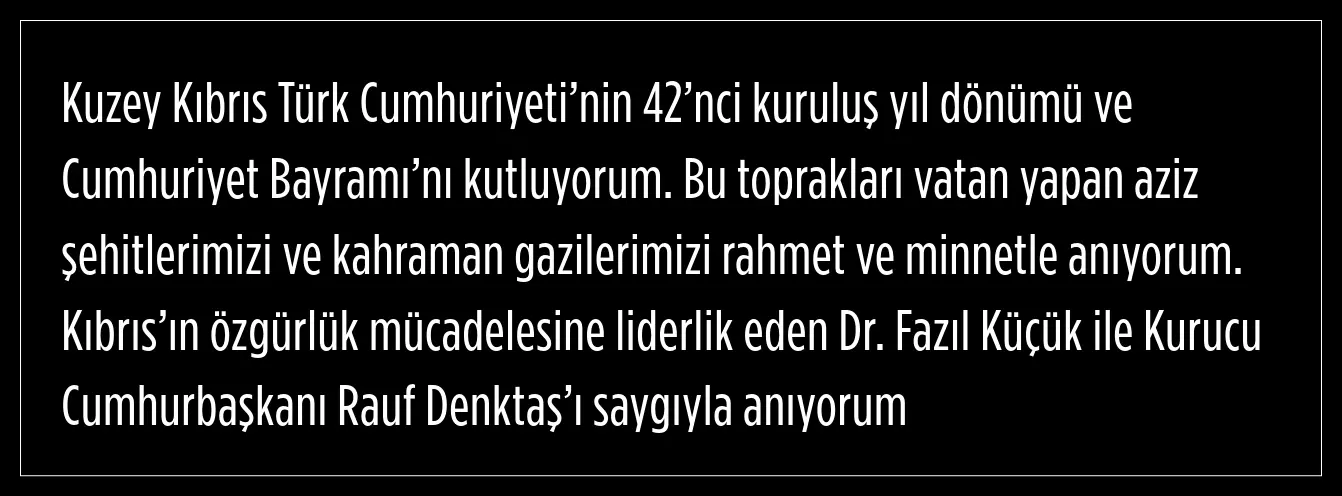 "42’nci kuruluş yıl dönümü ve Cumhuriyet Bayramı’nı kutluyorum"