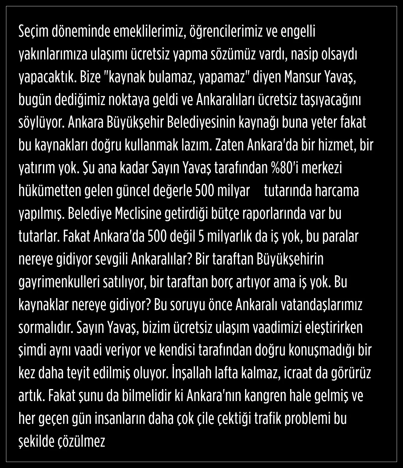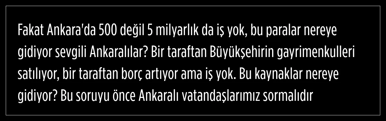 Ankara Büyükşehir Belediyesinin kaynağının buna yeteceğini ancak bu kaynakların doğru kullanılması gerektiğini belirtti.