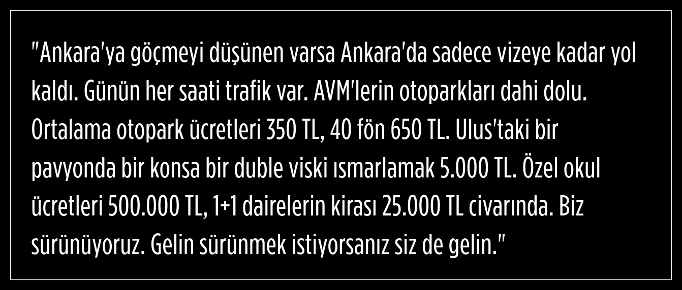 Paylaşımda AVM otoparklarının dolu olduğu, ortalama otopark ücretlerinin 350 TL’ye çıktığı ve hizmet sektöründe 40 fönün 650 TL olduğu iddia ediliyor; eğlence mekânlarında bir duble viski için istenen 5.000 TL gibi rakamlar dikkat çekiyor.