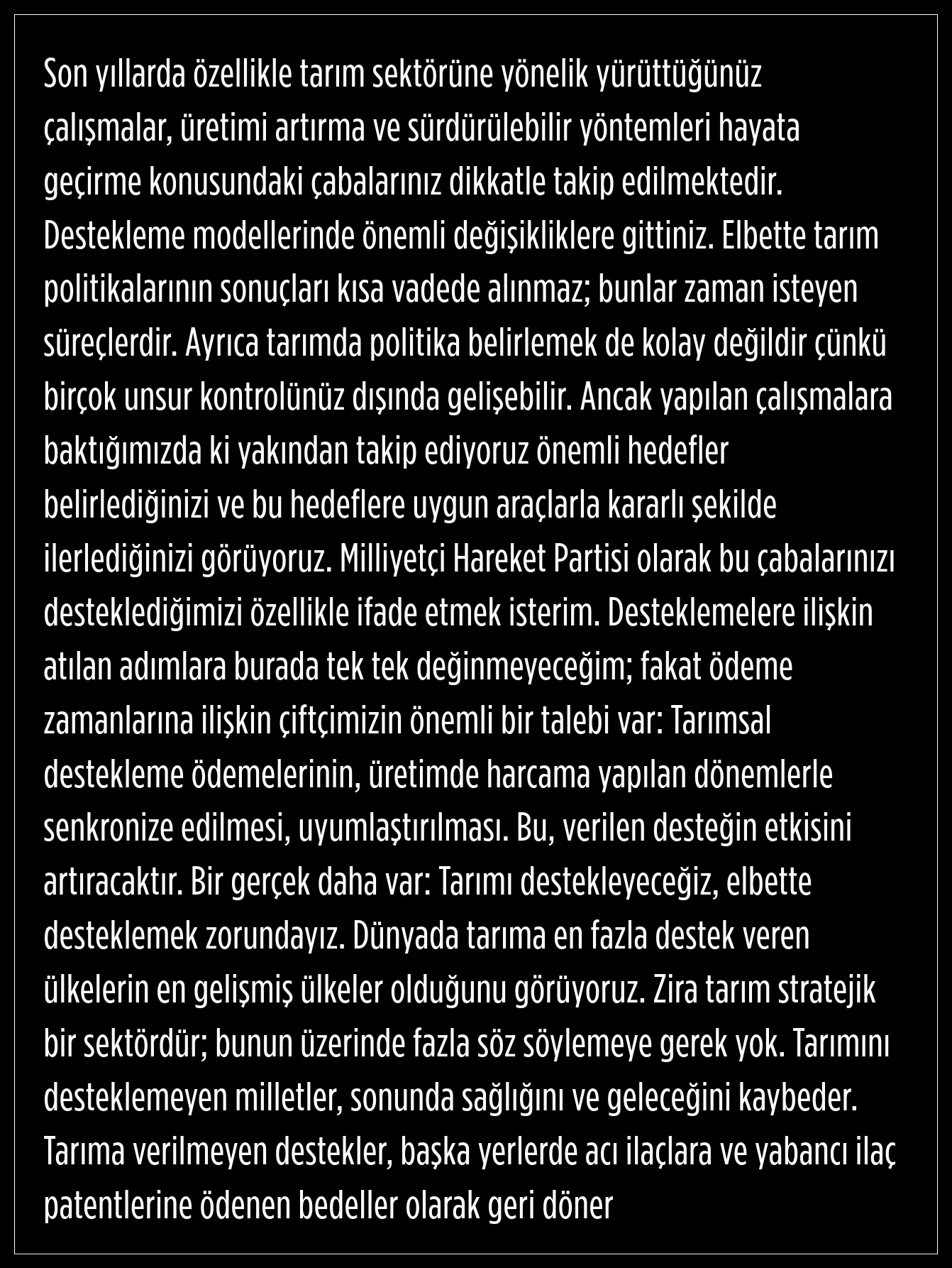 "Tarımını desteklemeyen milletler, sonunda sağlığını ve geleceğini kaybeder"