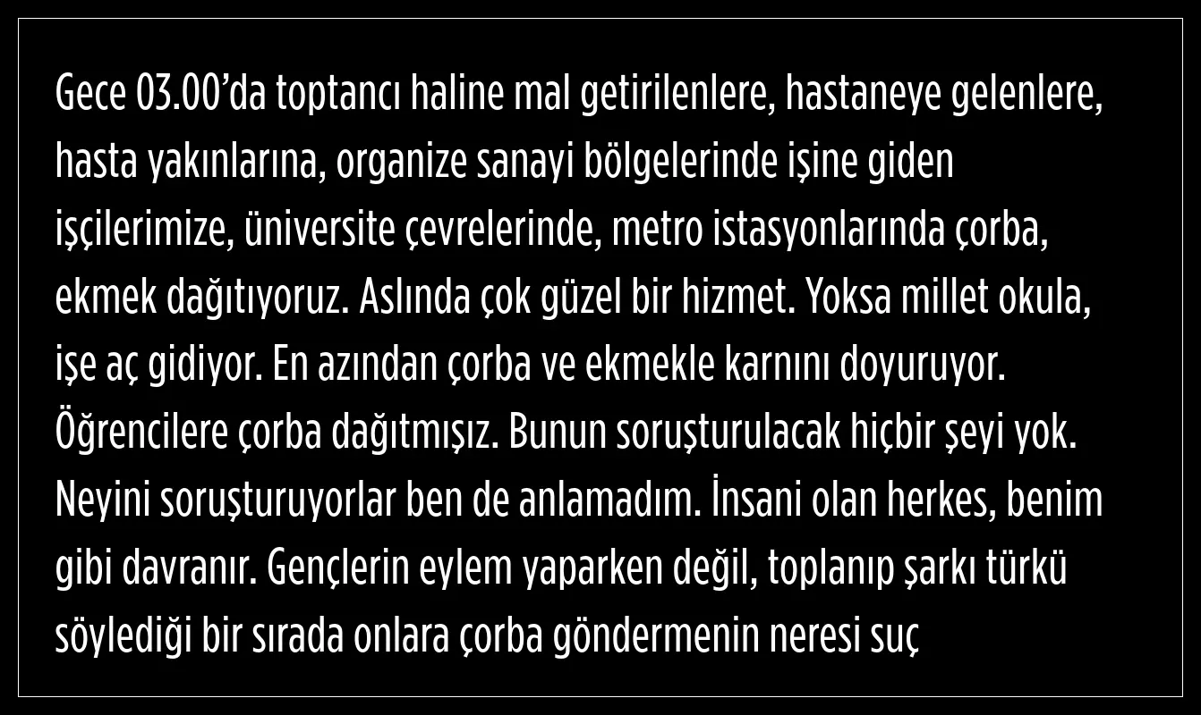 Yavaş, gençlerin eylem yaparken değil, toplanıp şarkı türkü söylediği bir sırada onlara çorba göndermenin neresi suç olduğunu anlamadığını kaydetti.