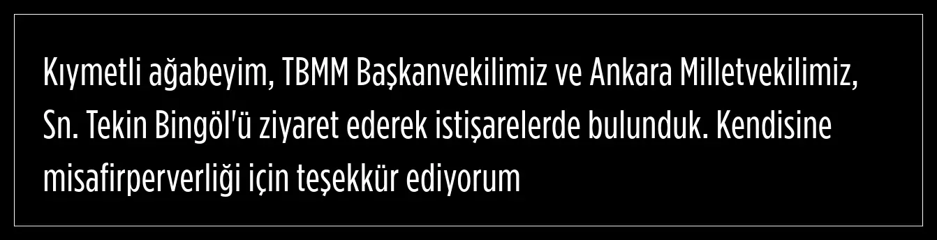 Özarslan, Bingöl'e misafirperverliği için teşekkürlerini iletti.