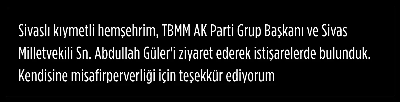 Mesut Özarslan, ilk olarak TBMM AK Parti Grup Başkanı ve Sivas Milletvekili Abdullah Güler'i ziyaret etti.