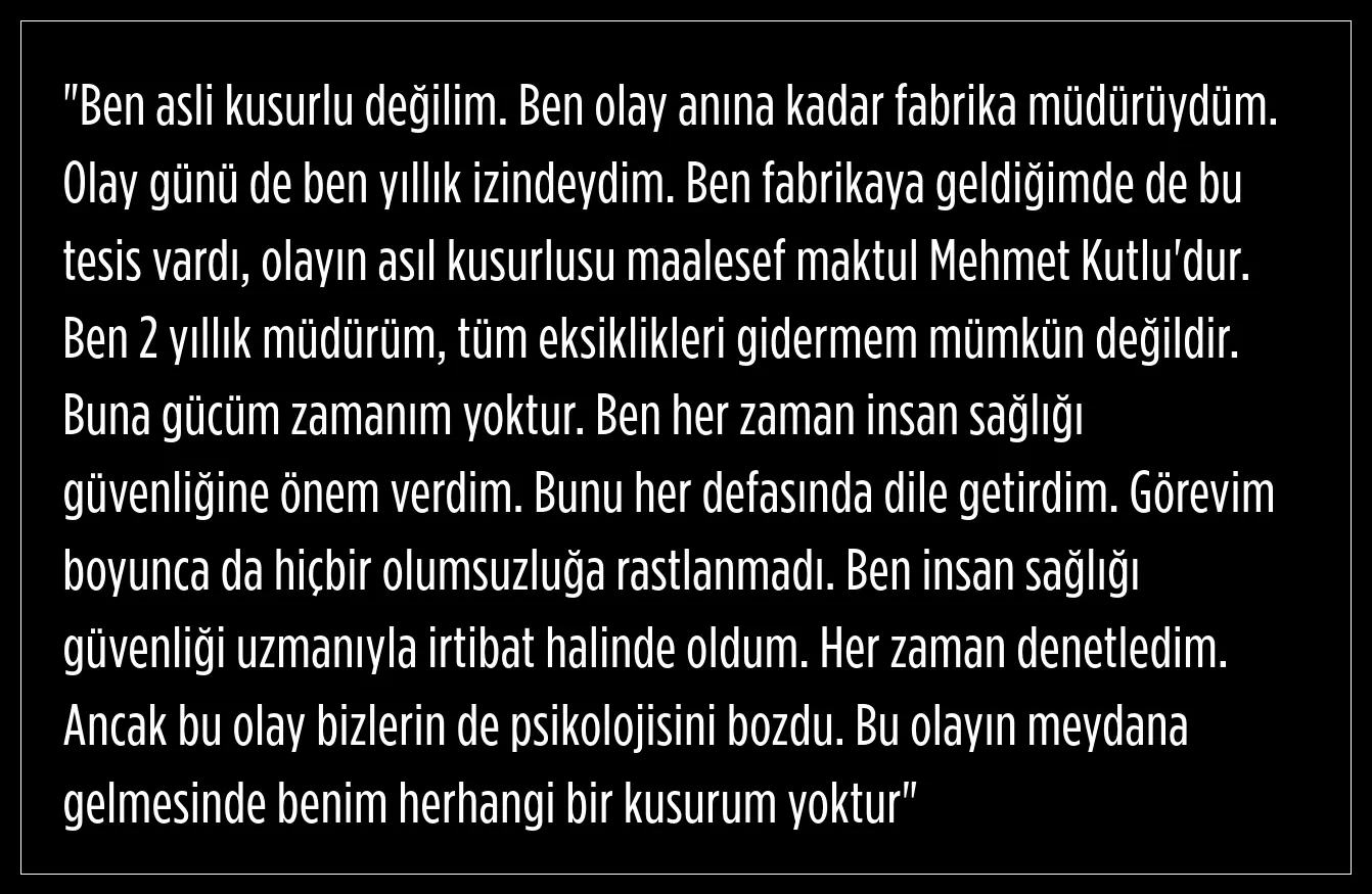 FABRİKA MÜDÜRÜ SAVUNMASINI YAPTI