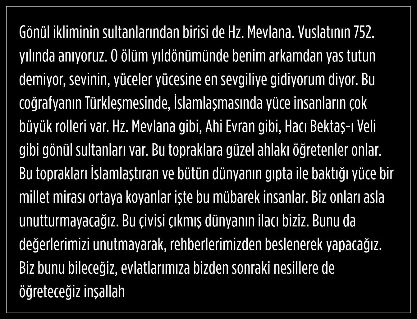 Öğretileriyle dünya çapında saygı gören büyük mutasavvıf Mevlânâ Celâleddin Rumi için Prof. Dr. Alper Akdeniz’in yönetimindeki Hicaz Ayin-i Şerifi Sema Töreni, yoğun ilgi gördü.