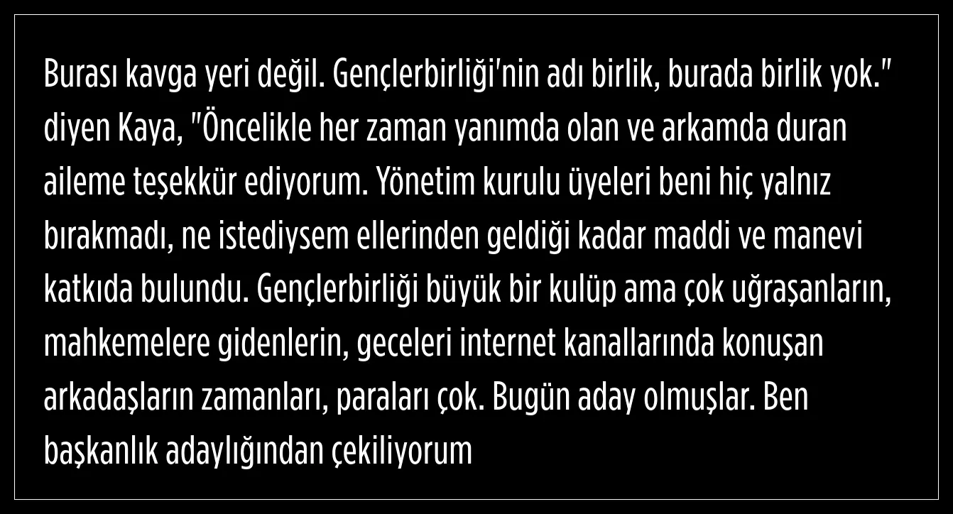 Mehmet Kaya, yaşananlar sonrasında tepki göstererek, başkanlık adaylığından çekildiğini duyurdu.