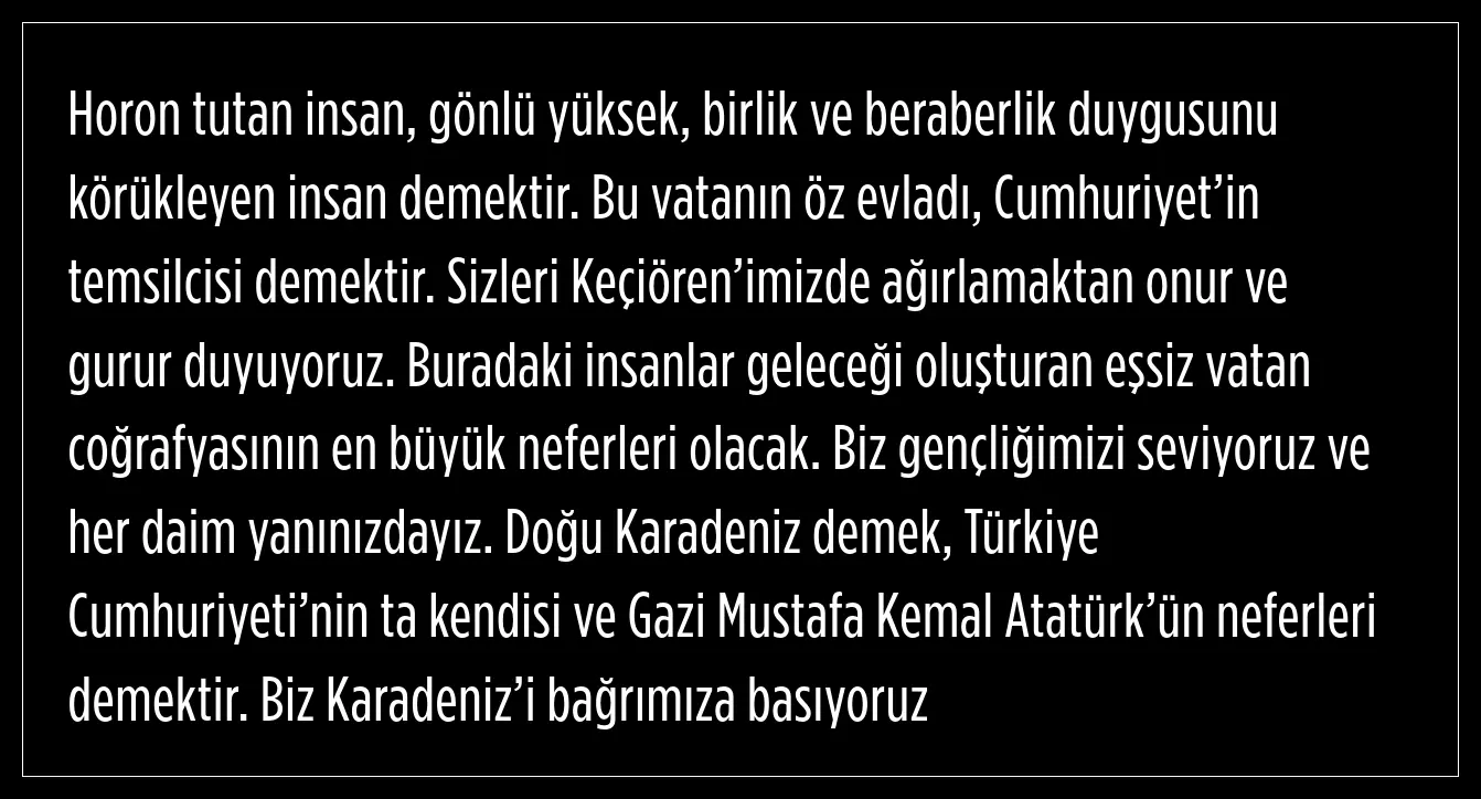 Karadeniz müziğinin coşkusunun hissedildiği ve görsel açıdan renkli anlara sahne olan festival, Başkent’te Karadeniz kültürünün tanıtılmasına katkı sağladı. Etkinlik sayesinde gençler bir araya gelerek sosyal bağlarını güçlendirdi. Başkent Trabzon Dernekler Federasyonu temsilcileri ile üniversite öğrencileri, her zaman destek veren Keçiören Belediye Başkanı Dr. Mesut Özarslan’a teşekkürlerini iletti.