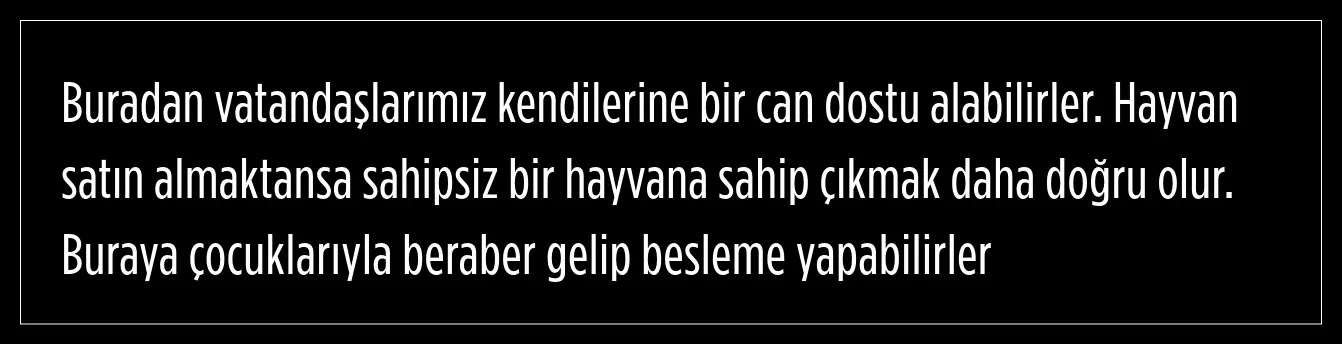 Merkezde kedi ve köpekler için ayrı bölümler yer alırken, tesiste ameliyathane, muayene birimleri ve idari ofislerin yanı sıra hayvanların vakit geçirebileceği bir park ile sahiplendirme alanı da bulunuyor.