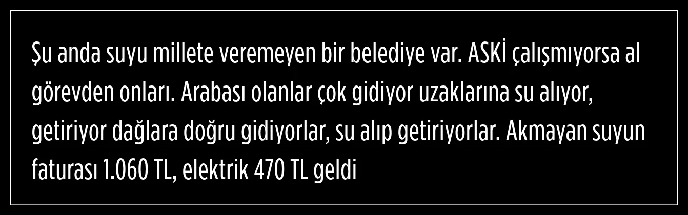 Su kesintileri üzerinden ABB Başkanı Mansur Yavaş'a seslenen vatandaşa, ASKİ'den yanıt geldi. Abonenin aylık tüketim verileri açıklanırken, ortalama hane tüketimlerinin çok çok üzerinde olduğu ifade edildi. Gerçeğe aykırı paylaşımlar hakkında halkı yanıltıcı bilgiyi alenen yayma suçu kapsamında ilgili mercilere suç duyurusunda bulunulacağı kaydedildi. Vatandaşlara, su tasarrufu çağrısı yapıldı.