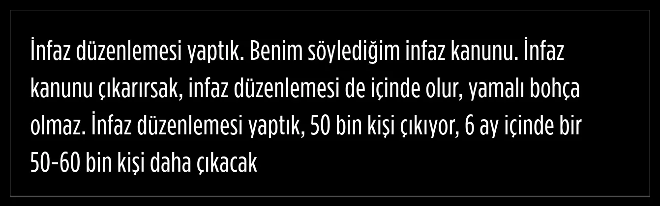 İnfaz düzenlemesine yönelik de açıklama yapan Yıldız, şöyle konuştu: