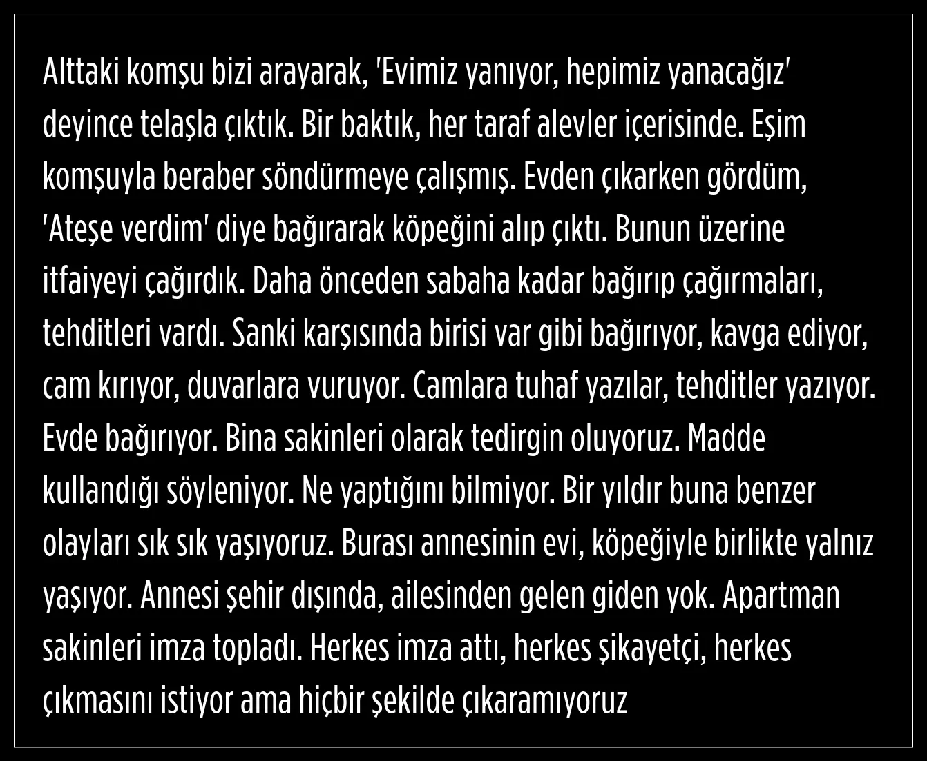 Apartmanda yaşayanlardan K.N., yaşananlarla ilgili şu ifadeleri kullandı: