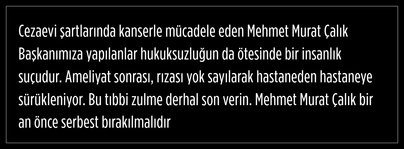 CHP Ankara Milletvekili Ersever, kendi hastane talebi reddedilen Murat Çalıkla ilgili, ''Tıbbi zulme derhal son verin. Serbest bırakılmalı'' diye paylaştı.
