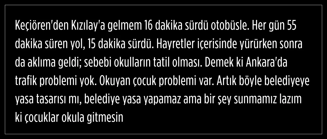 "Ankara'da trafik problemi yok. Okuyan çocuk problemi var"