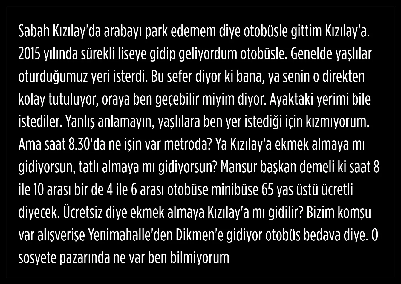 YAŞLILARIN TOPLU ULAŞIM KULLANMASI: BİR VATANDAŞ İSYAN ETTİ