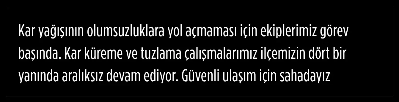 Belediye, kar küreme ve tuzlama çalışmalarının ilçenin dört bir yanında aralıksız devam ettiğini belirtti.