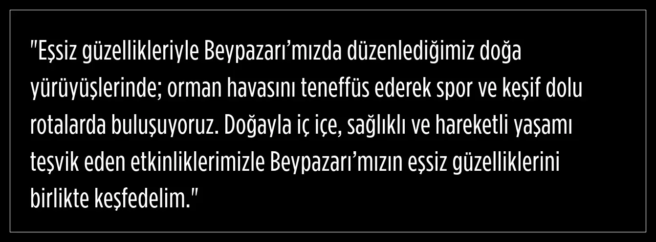 Beypazarı Belediyesinin düzenlediği doğa yürüyüşleri, sağlıklı ve hareketli yaşam alışkanlıklarının yaygınlaştırılmasını amaçlıyor. Etkinliklerle birlikte vatandaşların düzenli hareket etmesi ve doğayla temas kurması hedefleniyor. Yürüyüşler, farklı yaş gruplarından katılımcıların ilgisini çekecek şekilde planlanıyor.